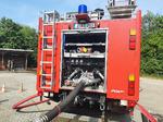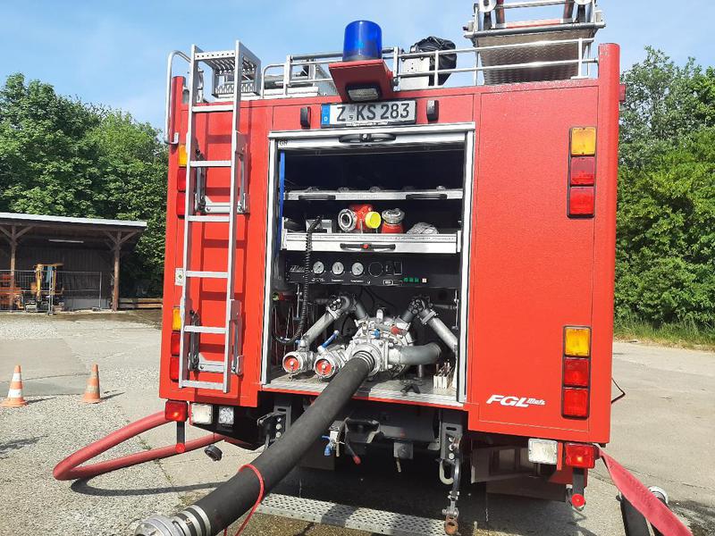 Geübt wurde ein Aufbau der Wasserversorgung mittels Saugleitung und dem Wiesenburger LF 16/12. Nach dem LF wurden mehrere B-Leitungen zu einem Verteiler verlegt. Die Abgabe erfolgte durch ein B-CM-Strahlrohr, welches als Werfer verbaut wurde.